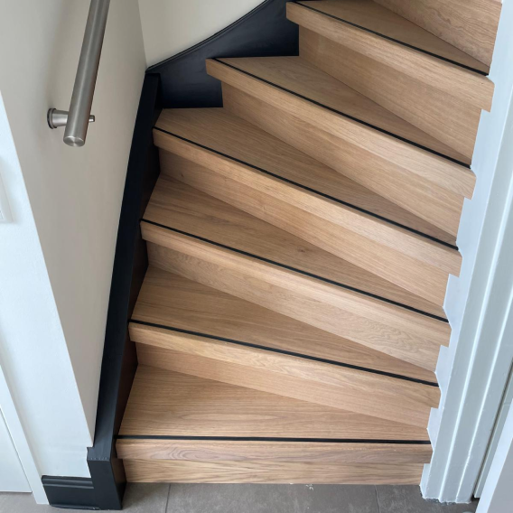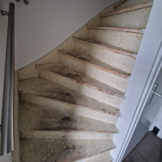 Bekijk hieronder het proces en het resultaat van het renoveren van een houten trap bij een van onze klanten.